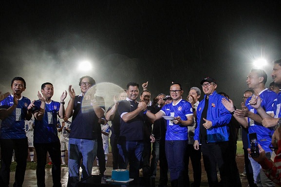 Genap berusia 72 Tahun, Persatuan Sepakbola Bogor (PSB) merayakan anniversary dengan menggelar pertandingan bola PSB vs All Star di GOR Pajajaran, Jalan Pemuda, Kota Bogor, Rabu (21/9/2022) malam.