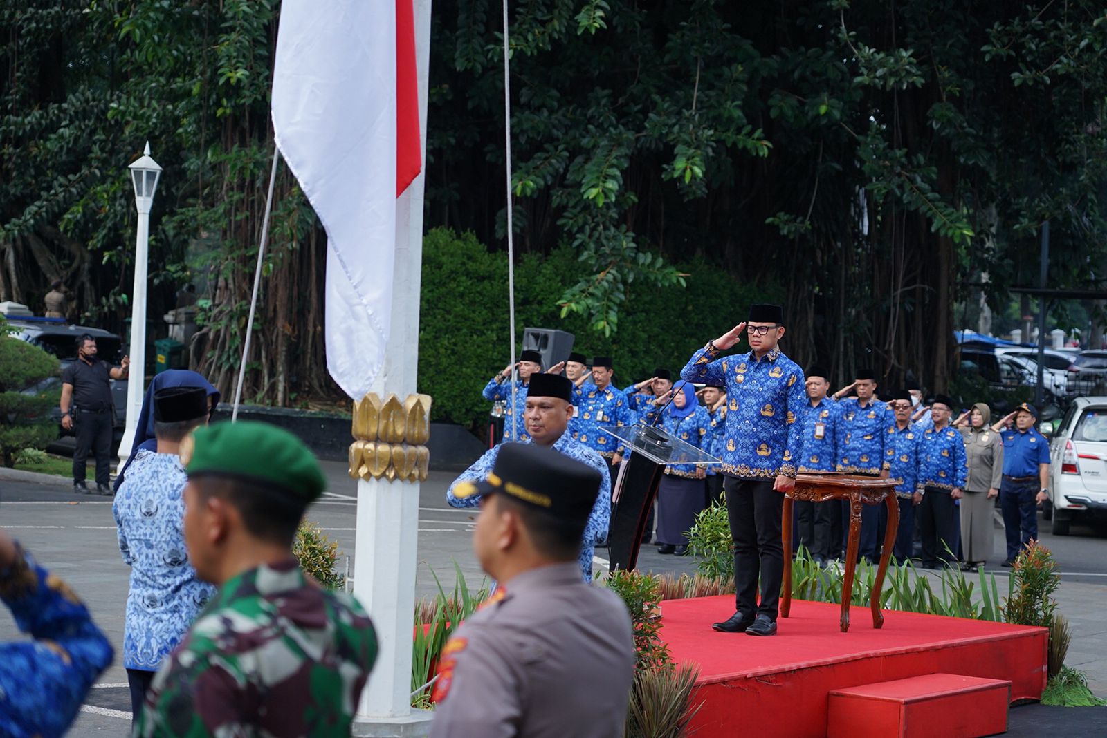 Turut hadir Wakil Wali Kota, Dedie A. Rachim, Sekda, Syarifah Sofiah bersama unsur pimpinan Forkopimda Kota Bogor, diantaranya Kapolresta Bogor Kota, Kombes Pol Susatyo Purnomo Condro, Dandim 0606 Kota Bogor, Letkol Inf Ali Akhwan, perwakilan Denpom III/1 Bogor dan PNS di lingkungan Pemkot Bogor.